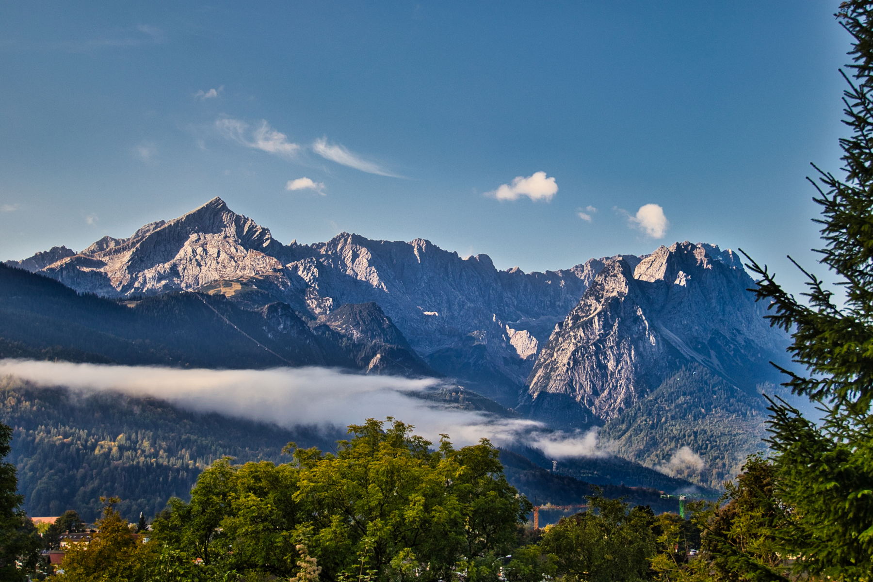 Heute geht es weiter über die deutsche Alpenstraße nach Garmisch Partenkirchen. Hier gibt es etwas außerhalb den terassenförmigen Park- und Wohnmobilstellplatz „Wankenbahn“, von dem man einen fantastischen Blick auf die umliegenden Berge und die Zugspitze hat.