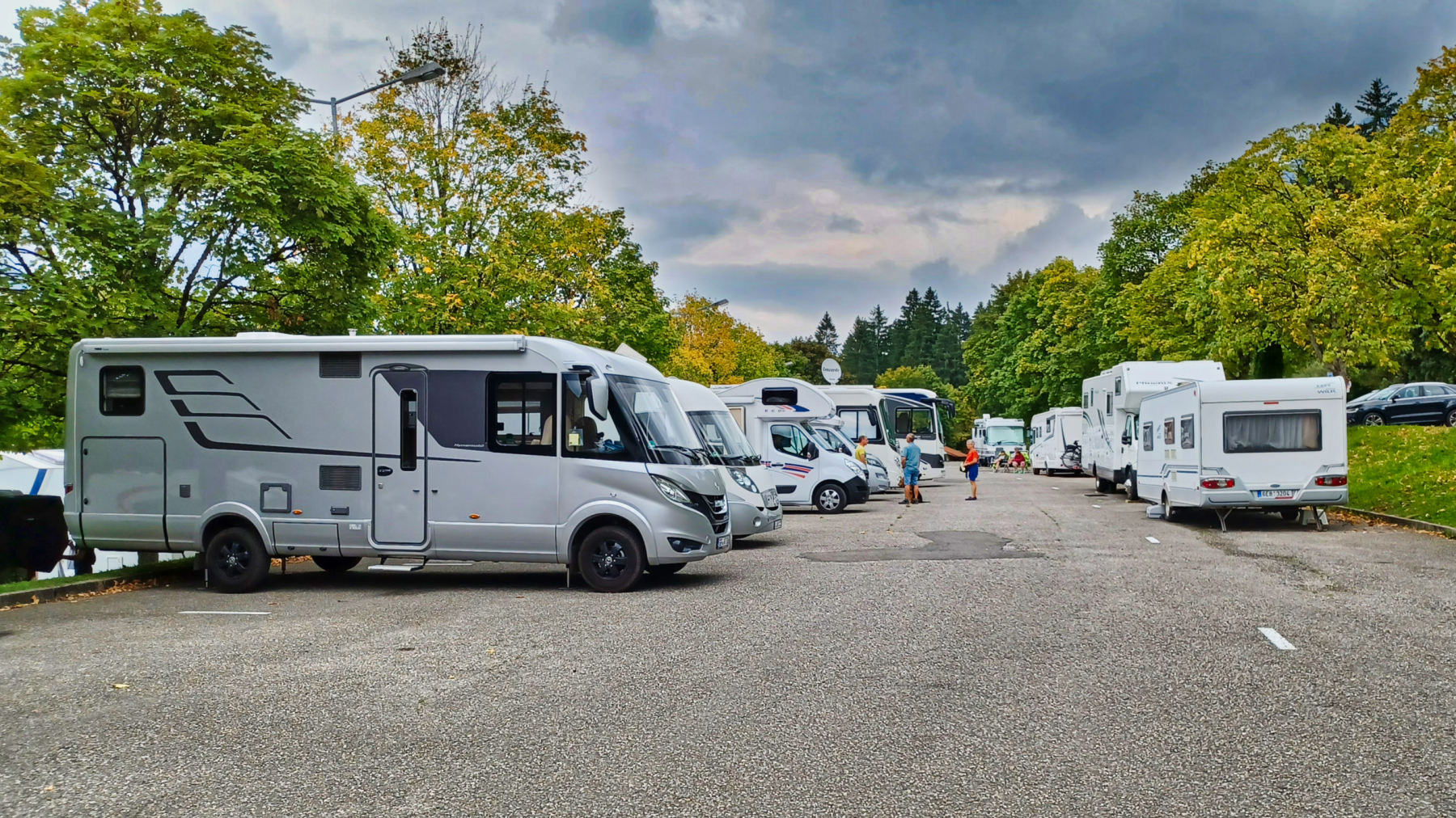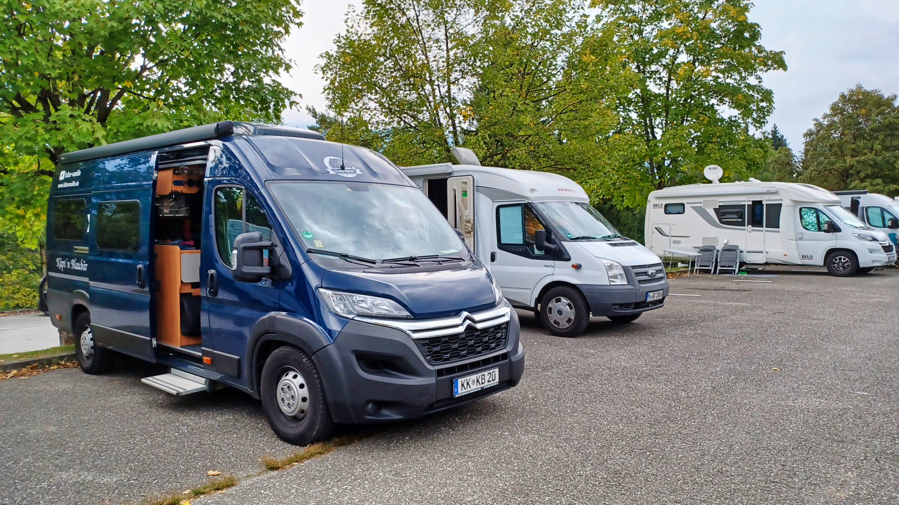 Am Morgen werde ich durch die ersten Züge neben mir auf der Bahnstrecke geweckt, das hilft mir etwas früher los zu kommen als üblich. Also packe ich nach dem Frühstück alles fahrtsicher, damit mich nicht irgendetwas während eines Bremsmanövers vorne im Cockpit besuchen kommt. Ich fahre durch Zürich mit dem üblichen Stau, vorbei an Winterthur und passiere die Grenze bei Schaffhausen wieder mit einem Stau – hier wird recht gründlich geprüft, doch mich winken sie einfach durch. In Stockach am Bodensee fahre ich erst einmal zu Aldi, denn dort ist eine Paketstation in der ich ein Paket abholen kann, anschließend fahre ich zum Campingplatz „Gartencamping Wahlwies“, einem sehr schönen Platz, der wirklich die Anmutung eines Gartens hat. Hier habe ich Glück und bekomme einen der letzten freien Plätze, ist schon komisch, dass zu dieser Jahreszeit noch so viele Camper unterwegs sind, vielleicht müsse die erst einmal nachholen, was sie über Monate nicht durften oder konnten wegen der C-Krise.
