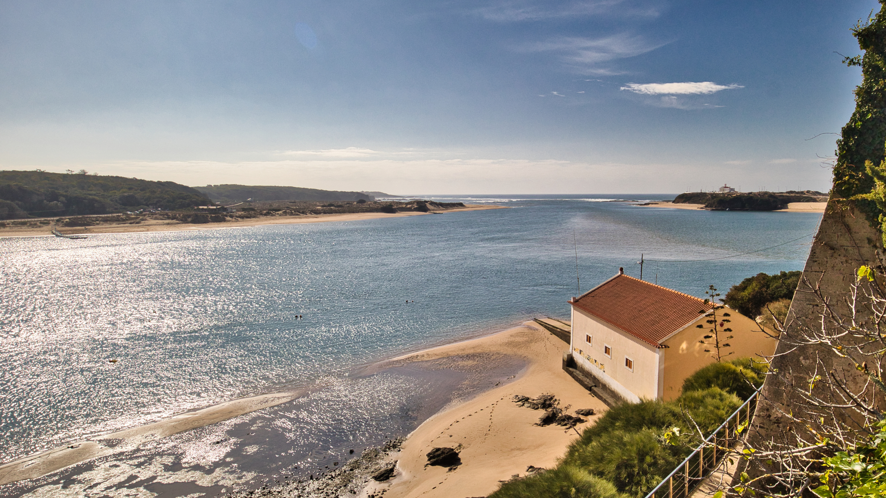 Auf der anderen Seite angekommen fahren wir über die 15km lange Halbinsel und weiter bis Vila Nova de Milfontes, was soviel heißt wie Neue Stadt der tausend Quellen an der Atlantikküste Costa Vicentina und an der Flussmündung des Rio Mira.