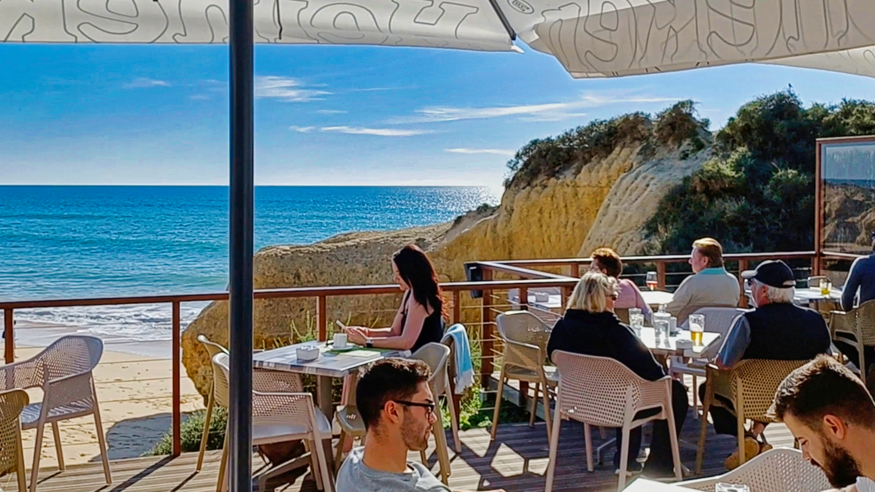 Heute war ich mit Lothar in einem nahe gelegenen Restaurant dem Mirante 3, das uns von anderen Campern empfohlen wurde. Das Ambiente ähnelt etwas einer Bahnhofshalle mit sehr vielen portugiesischen Gästen, was ja ein gutes Zeichen ist. Das Essen war sehr lecker – erst Oliven und Brot, dann eine Hühnersuppe, dann die Hauptspeise, wir hatten ein Steak (irgendwas mit brasilianisch). Es waren zwei sehr dünne große Steaks, die leider etwas zäh waren entgegen der Erfahrung anderer Camper. Dazu gab es Reis, schwarze Bohnen und Pommes Frites. Als Nachtisch konnte man zwischen Karamell-Mousse, Reispudding oder ein Stück Kuchen wählen. Dazu hatten wir Wein und Bier. Alles zusammen haben wir 10,-€ pro Person bezahlt. Nach dem Essen sind wir noch nach Gale, einem Ortsteil von Albufeira, gefahren um dort im Strandcafé einen Cappuccino oder Galao (Milchkaffee) zu trinken und aufs Meer zu schauen.
