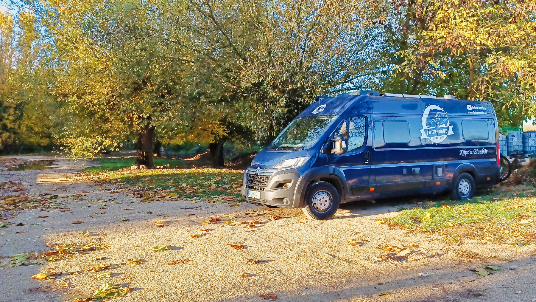 Leider muss ich kurz nach der Ankunft feststellen, dass mein kompletter Strom des Wohnbereiches ausgefallen ist. Das bedeutet, kein Licht, keine Trittstufe an der Schiebetür, keine Heizung, denn die Steuerung derselben ist ohne Strom. So prüfe ich die Sicherungen im Elektroblock unter dem Fahrersitz, alles in Ordnung. Auch das Handbuch ist mir keine Hilfe und bietet keinen Hinweis. Ich versuche vergeblich noch meine Wohnmobiltechnik-Firma zu erreichen, die am Mittwoch noch einmal versucht habe, den Ladebooster so hinzubekommen, dass er während der Fahrt die Batterien konstant mit angemessener Spannung läd. Das war zuletzt immer noch ein Problem. Meine erste Vermutung ist, dass bei den Arbeiten am Mittwoch irgendetwas schief gelaufen ist. Warum ich nicht versuche, über das Pössl-Forum nach einer Lösung zu fragen, weiß ich nicht.