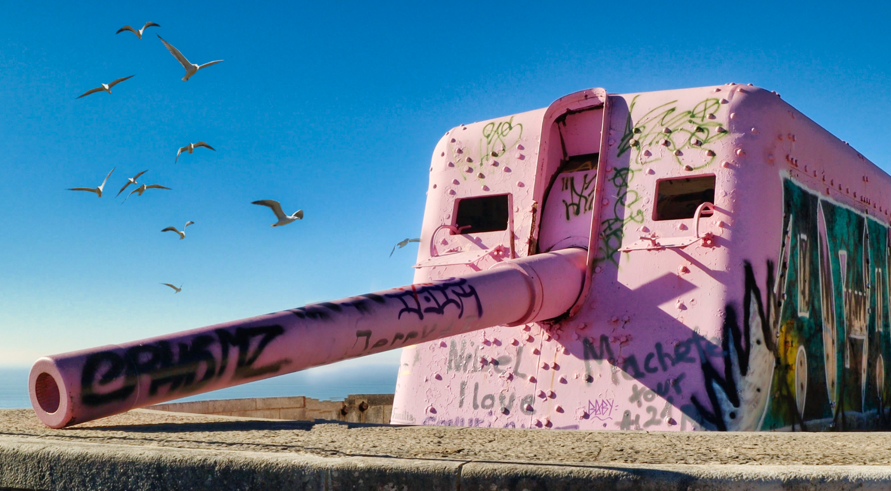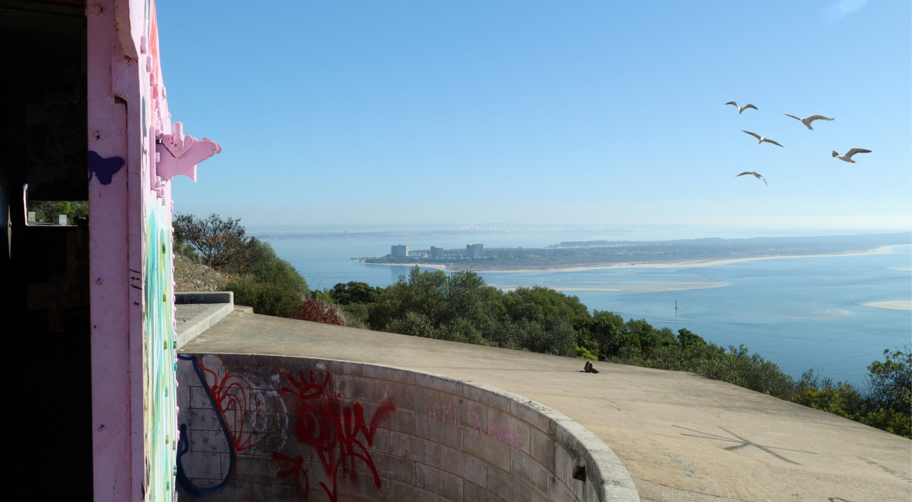 Heute geht es dann nach drei Tagen weiter Richtung Süden. Lothar aus Aachen, mit dem ich jetzt hier die Tage zusammen gestanden habe, hat sich entschlossen mit seinem Camper mit runter zu Algarve zu kommen. Nach dem Auschecken fahren wir erst noch den Berg über dem Campingplatz hinauf, zu einer alten Festung, das Forte Velho do Outão, das wir uns ansehen möchten. Der Bau des Forts geht auf das 17.Jh. zurück. Die Geschütze stammen aus dem ersten Weltkrieg.