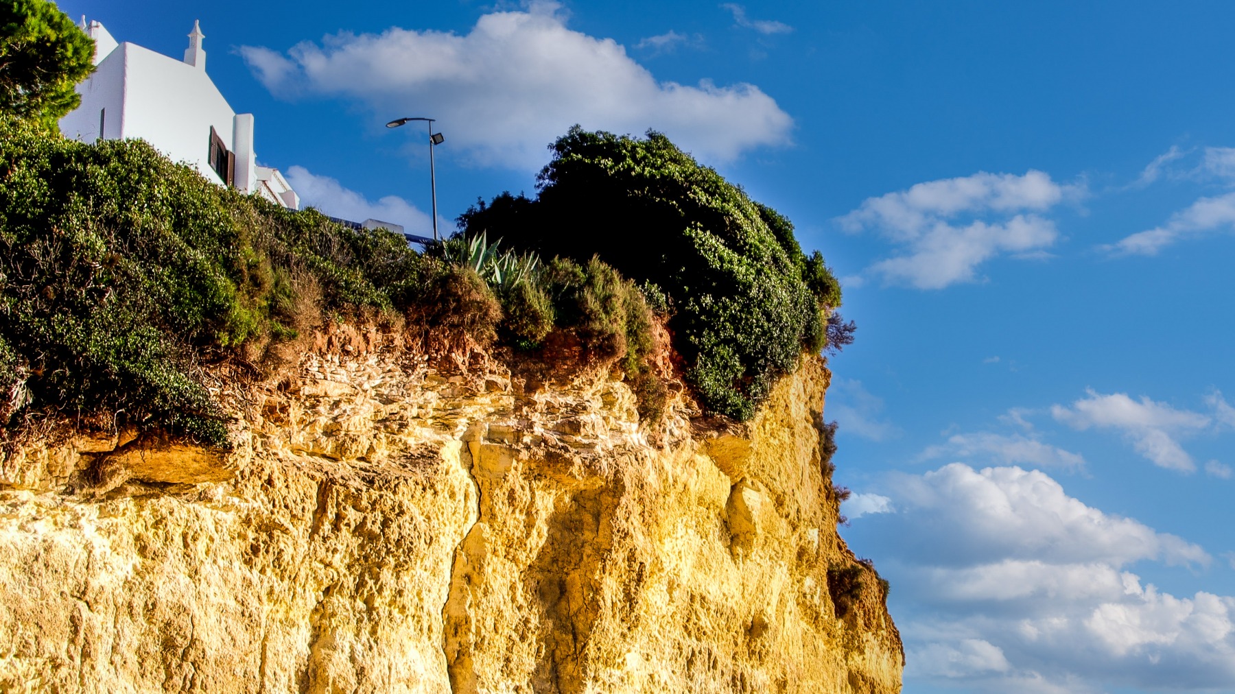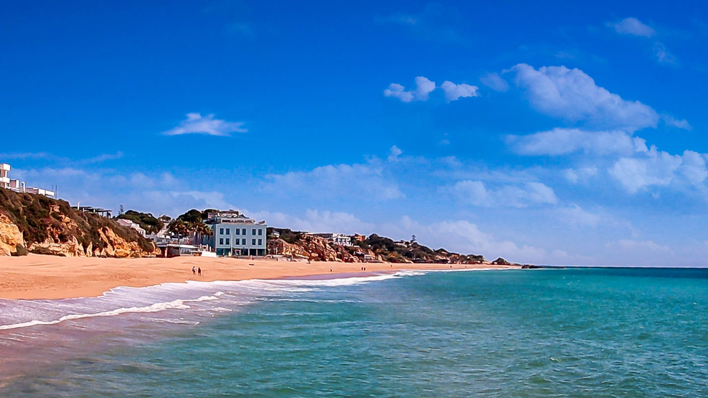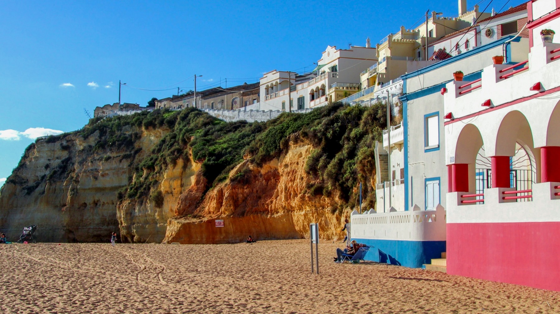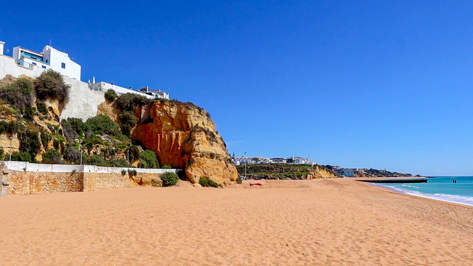 Da Albufeira sehr hügelig ist, kommt man zum Strand unter anderem durch einen Tunnel unter einem Hotel, der wie eine Höhle gestaltet ist. Der Stand selbst ist etwa 2 Kilomenter lang und an beiden Seiten mit steilen Felswänden begrenzt.