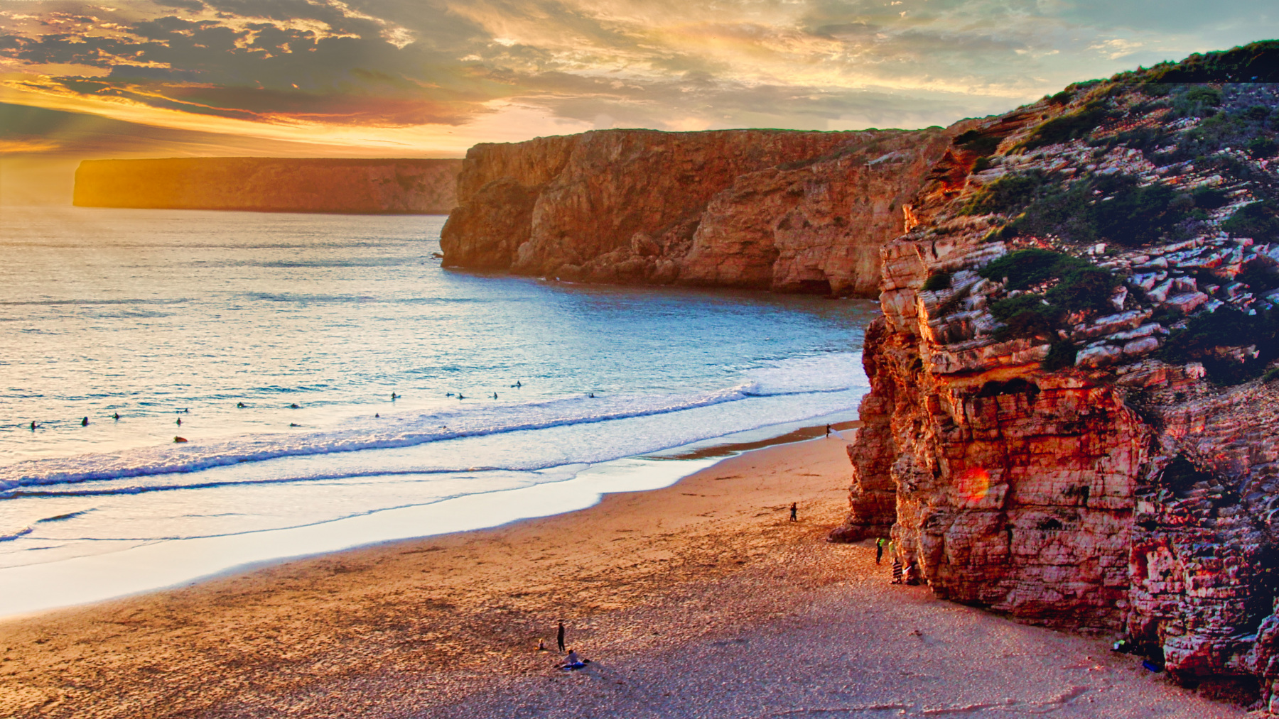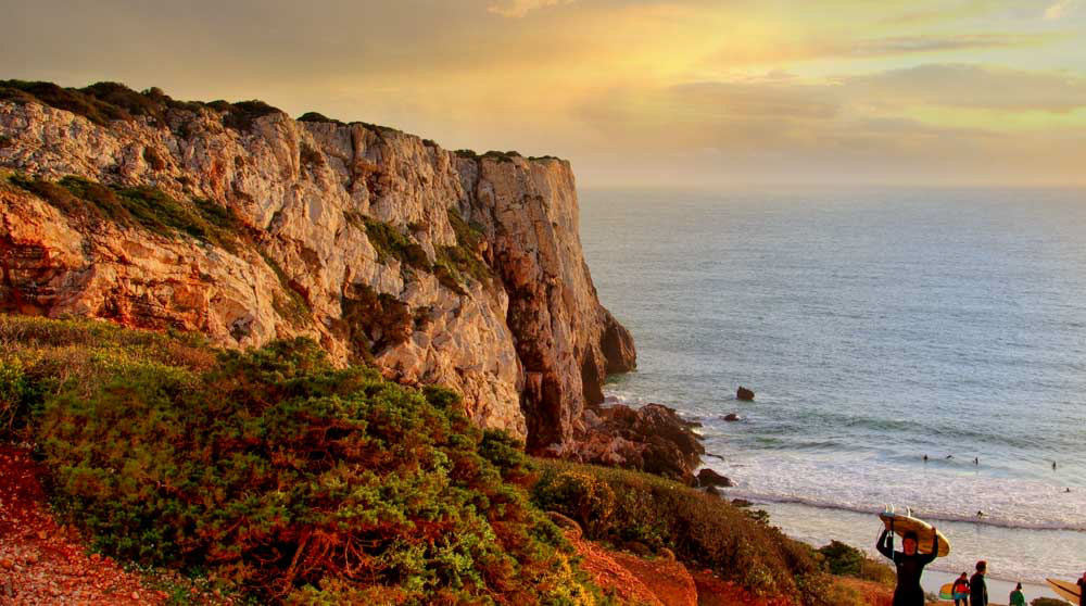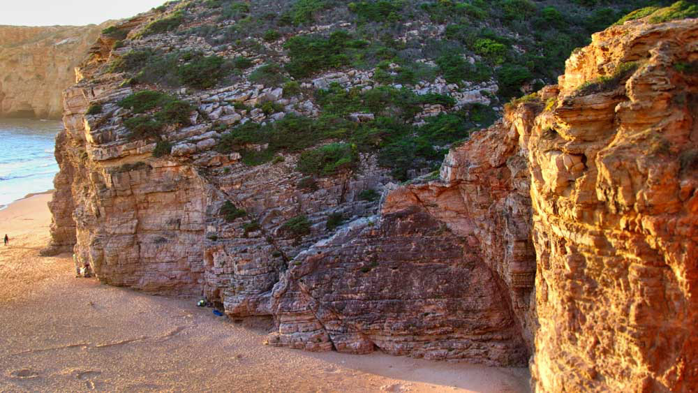 Auf dem Rückweg habe sich dann noch den Sonnenuntergang ein paar Buchten weiter Richtung Sagres genossen – Paia do Beliche. Hier waren auch viele Surfer unterwegs, um einen Ritt auf den Wellen im Abendlicht zu genießen.