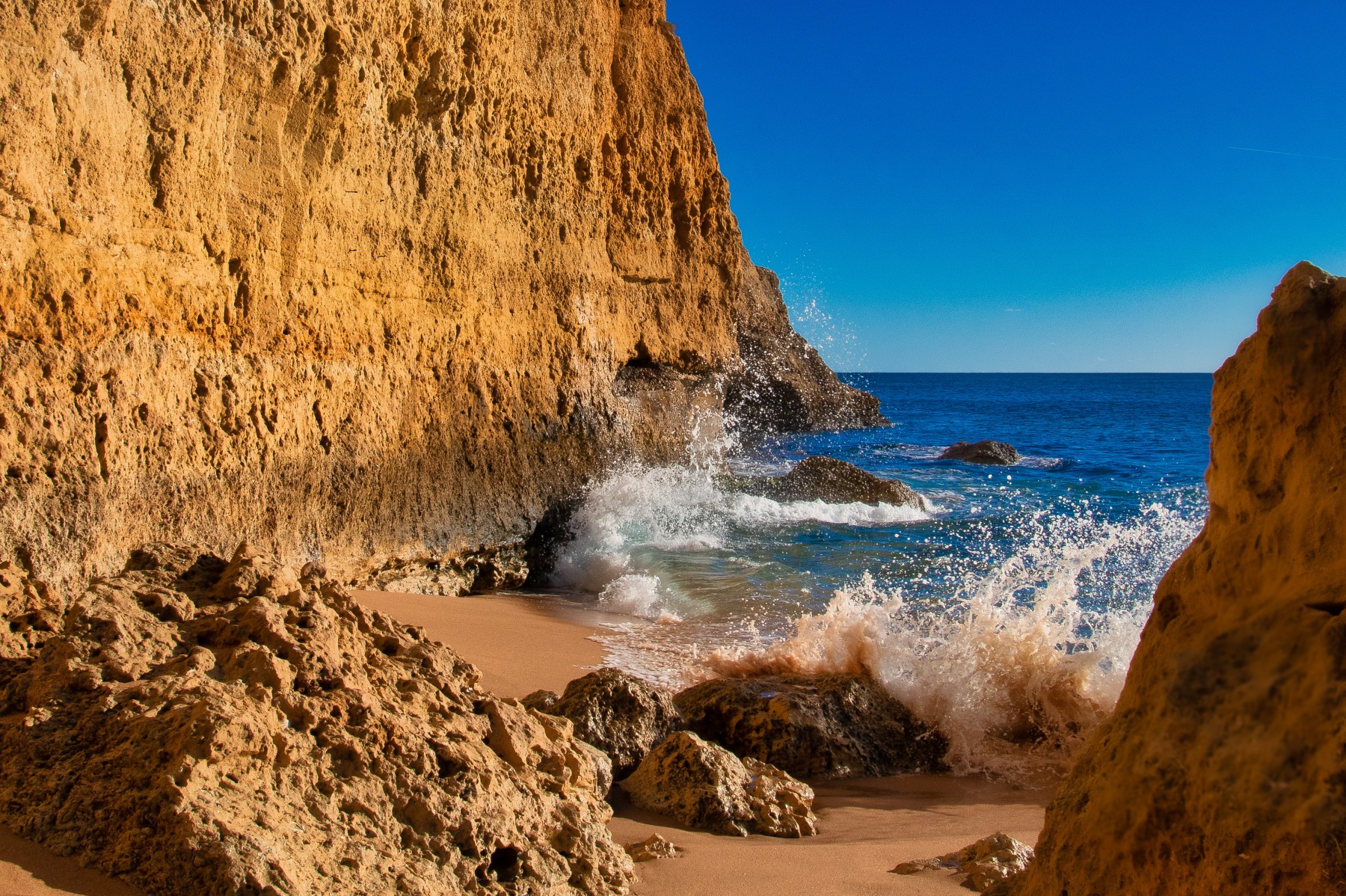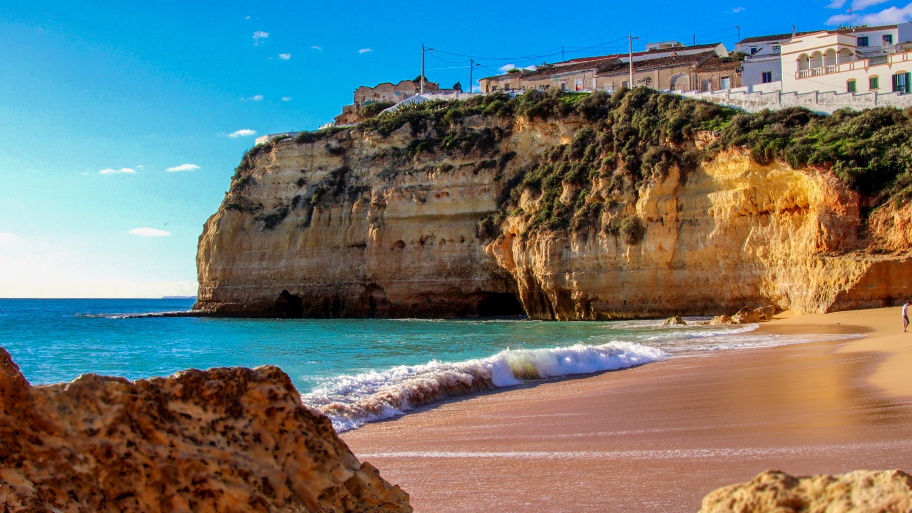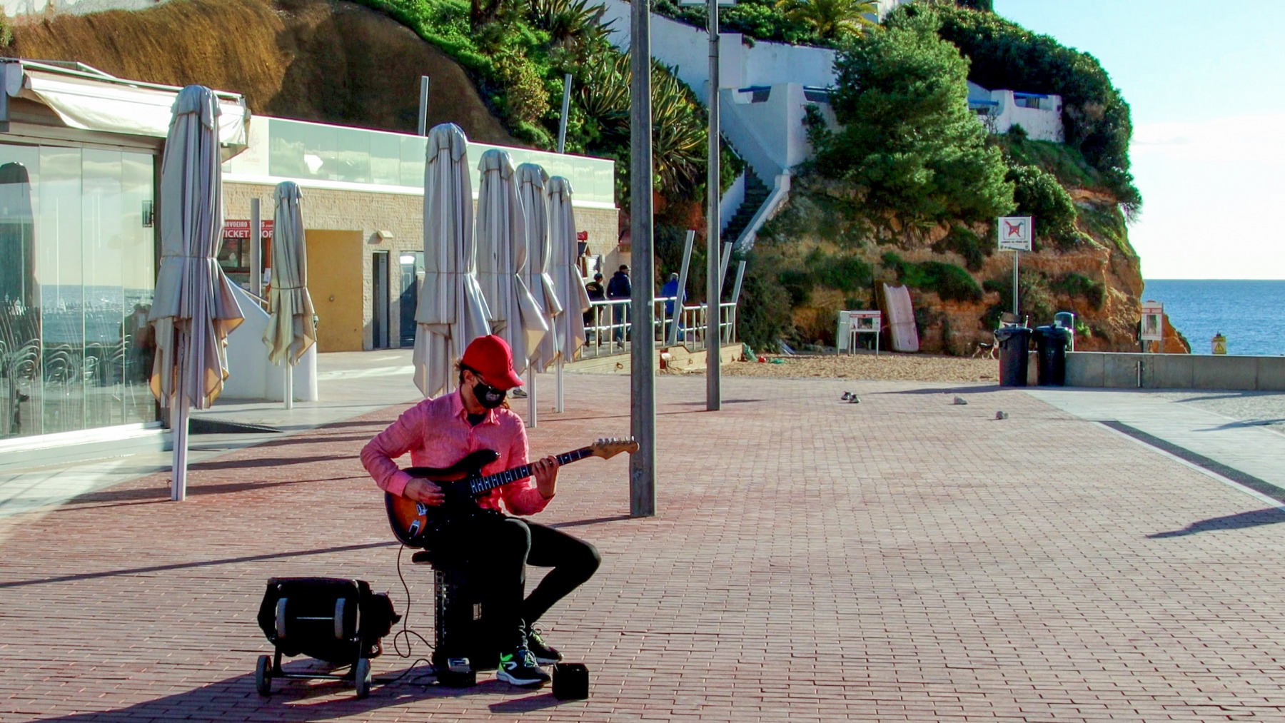 Vor dem strengen Lockdown fahre ich noch ein wenig an die Küste schöne Strände erkunden. So entdecke ich den kleinen Ort Carvoeiro mit seinem schönen Strand eingebettet in eine beindruckende Felsenbucht. Ich besuche den Strand, auf dem einige Kinder spielen, genieße den Ausblick aufs Meer und die Wellen und lausche einem Gitarrenspieler bei seiner Jazzmusik.