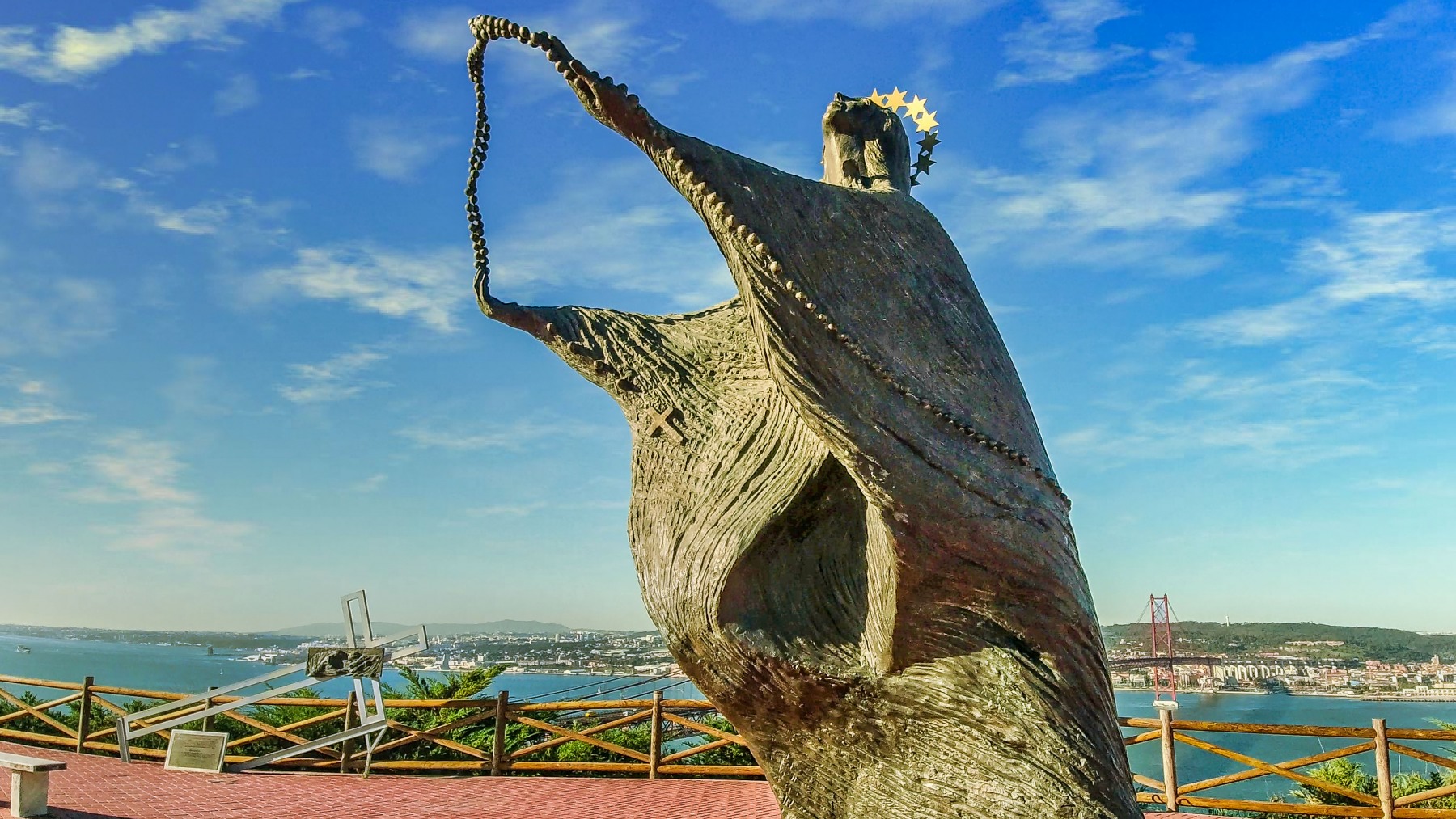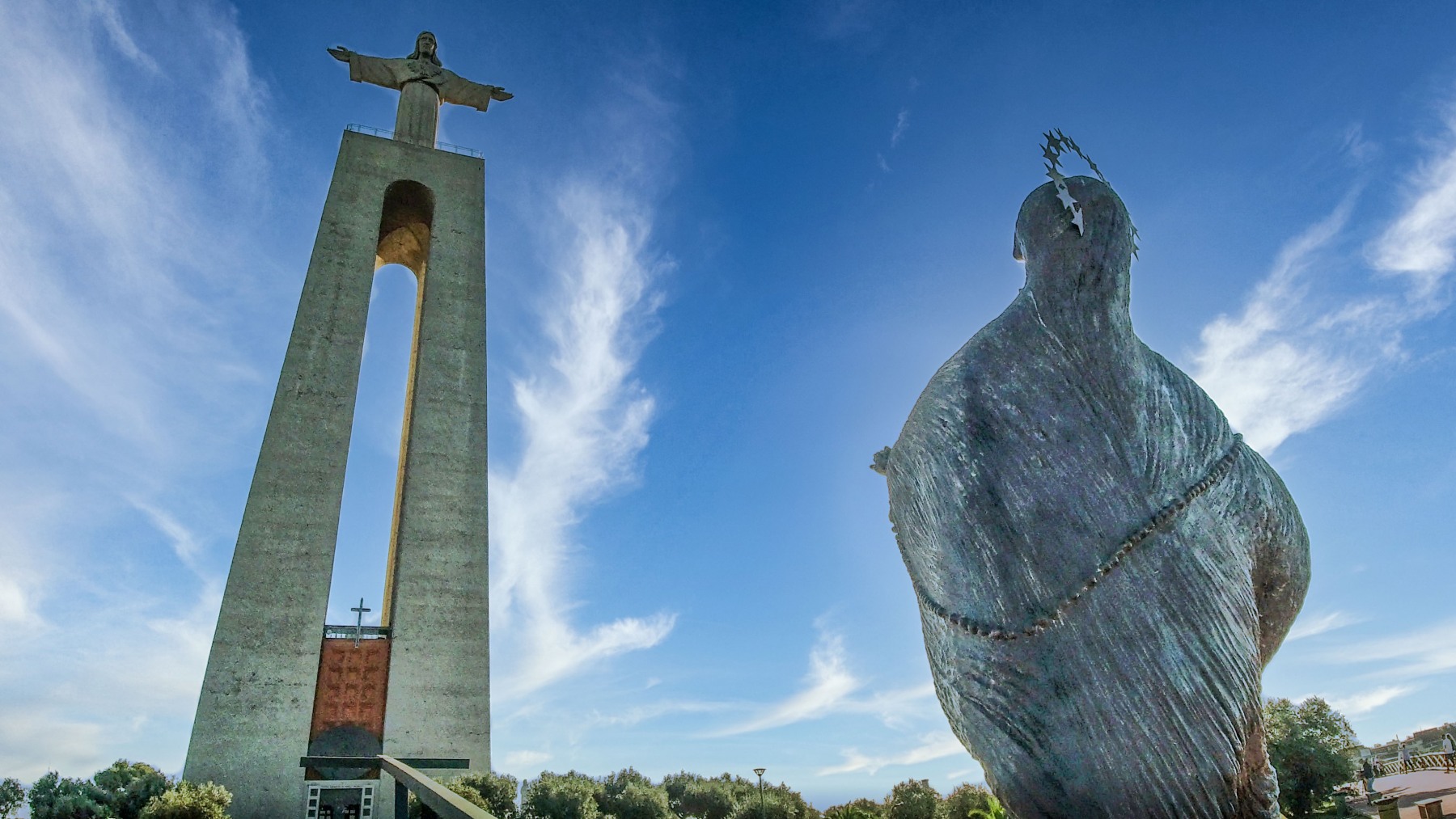 Hier auf der anderen Seite steht hoch oben auf einem Hügel die Christusstatue „Cristo rei“, die an die bekannte Statue in Rio de Janeiro erinnert. Mit ihren 28 Metern ist sie nur 2 Meter kleiner als ihr Pendant in Brasilien und wacht über die Stadt Lissabon und die Brücke „Ponte 25 de Abril“. Ich fahre mit einem Lift auf die Aussichtsplattform, von der man einen fantastischen Blick über die Stadt und die Mündung des Flusses Tejo hat.