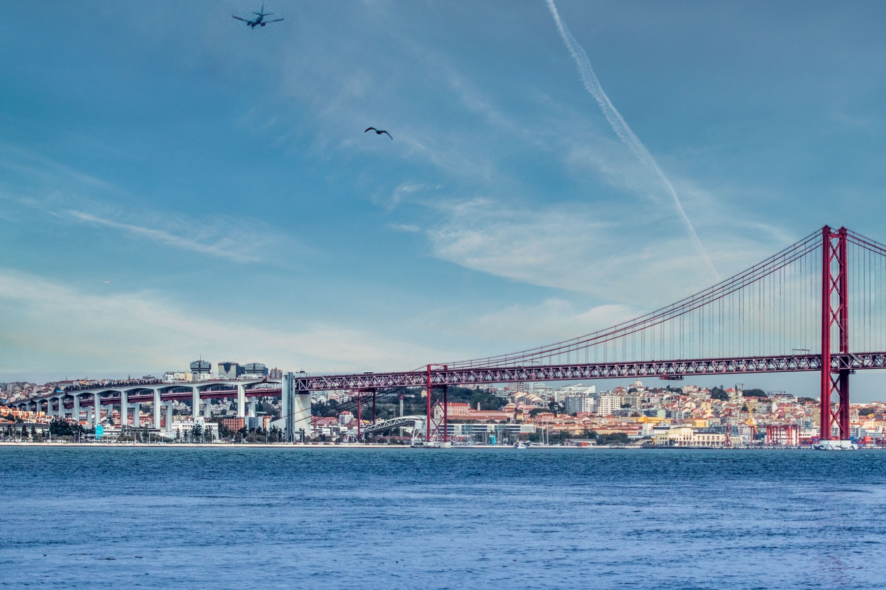 Daher fahre ich auf die andere Seite der Bucht und den Fluss Tejo über die imposante Hängebrücke, die stark an die Golden Gate Bridge in San Franzisko erinnert. Vom Ufer bieten sich mir auch schöne Ausblicke auf Lissabon.