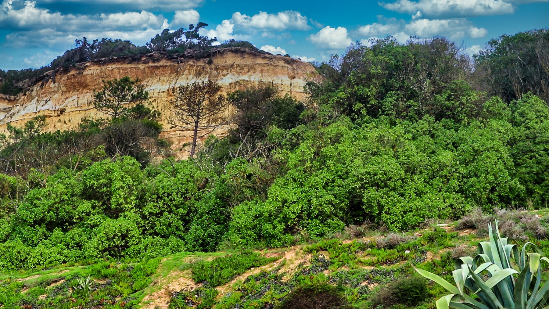 Am nächsten Morgen mache ich mich auf den Weg zurück an die Westküste der nördlichen Algarve. Hier soll es einen schönen Campingplatz geben. Nach einer Fahrt durch das zerklüftete Hinterland der Algarve erreichen ich den Platz, der etwas außerhalb des Ortes liegt, gegen 14 Uhr, melde mich an und kann mir aussuchen, wo ich mich hinstellen will. So fahre ich über den Platz der abschüssig aber in Etagen angelegt ist mit Bereichen für Wohnmobile und Wohnwagen und für Zelte. Ich suche mir eine Stellplatz im hinteren Bereich des Platzes, wo kaum andere Wohnmobile stehen in der Nähe eines der drei Sanitärgebäude. Hier auf dieser Eben stehe ich so gut wie alleine. Der Platz ist beschattet mit vielen Bäumen meist Eukalyptus. Hier werde ich zweieinhalb Wochen bleiben.