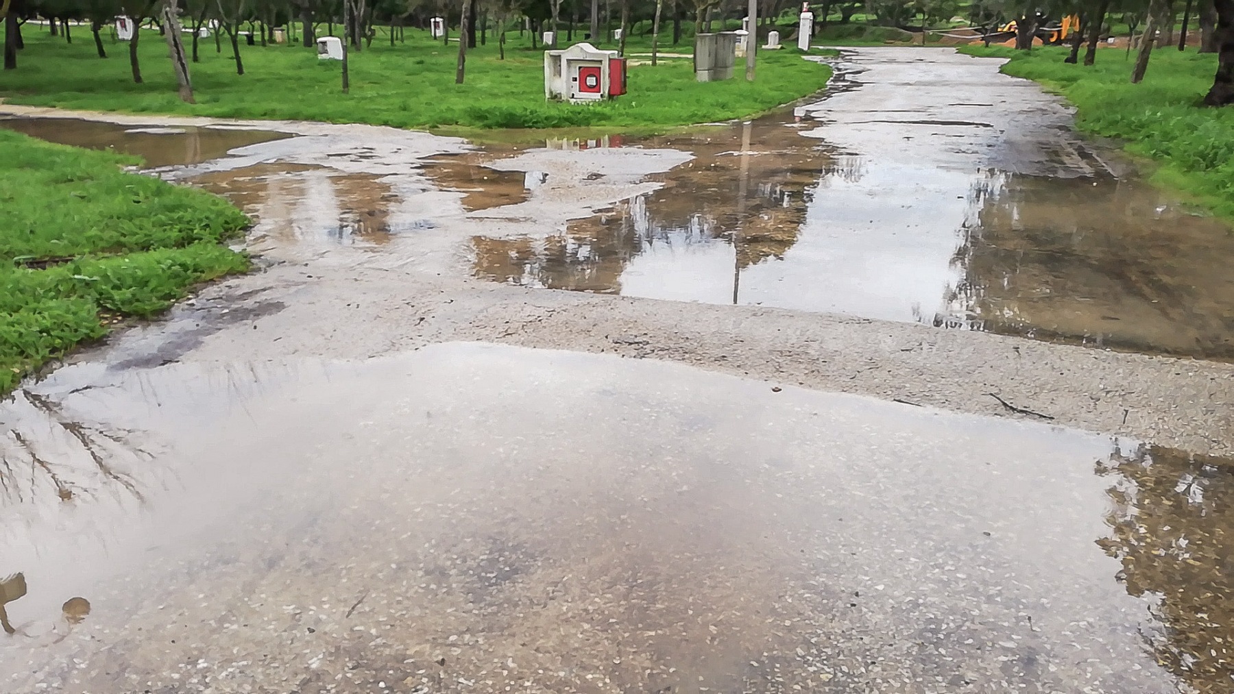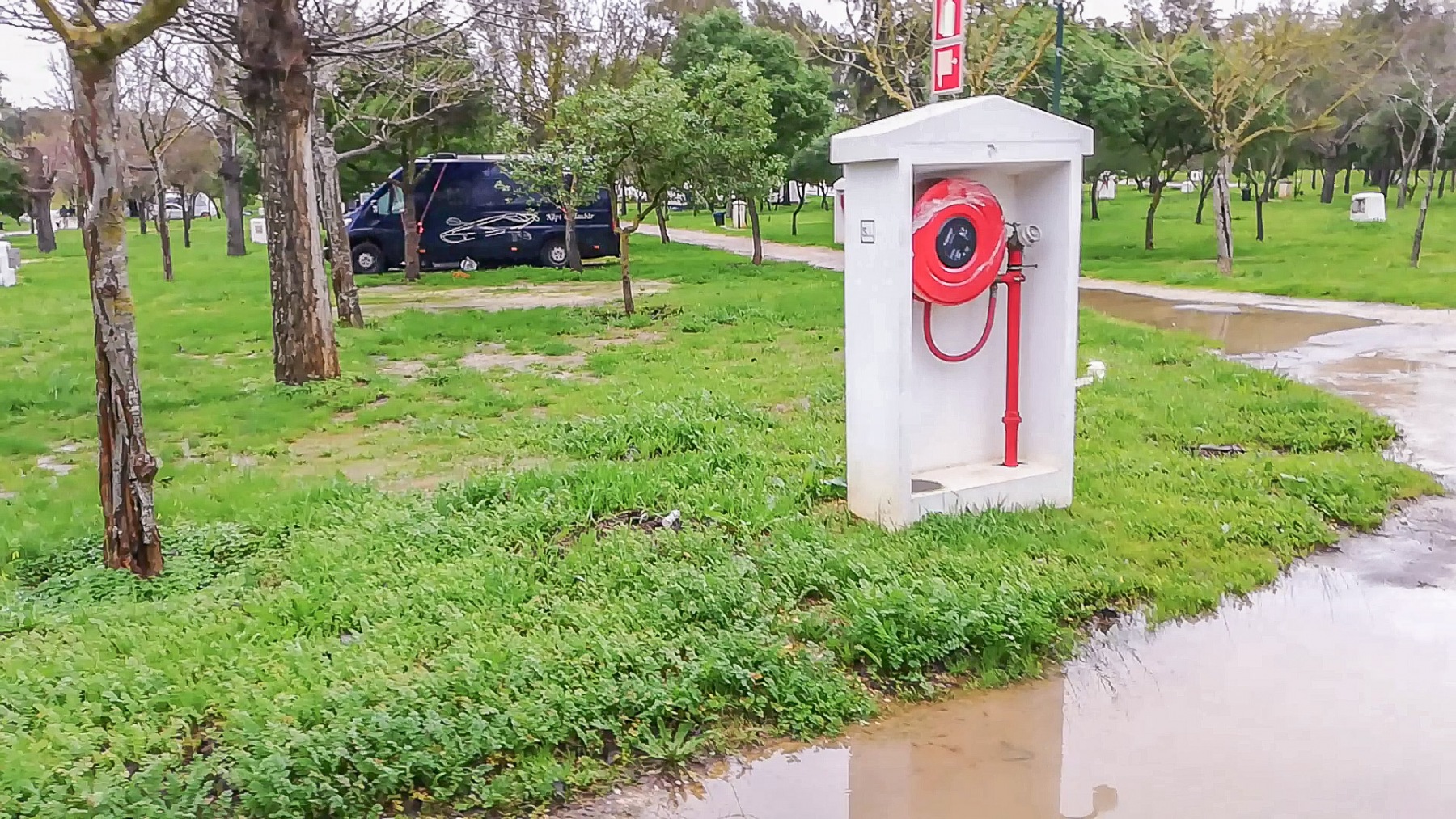 Ende Januar bis Anfang Februar regnet es hier sehr stark und ergiebig, so viel wie Jahre zuvor nicht mehr, wie mir andere Camper erzählen, die hier schon öfter über Winter waren. Dadurch wird der Platz, je nach Standort ziemlich matschig, denn die meisten Stellplätze bestehen aus Erde/Lehm-Wiese Gemisch. Außerdem sind die Wege zum Teil überschwemmt, so dass ich kaum trockenen Fußes zum Camper komme.