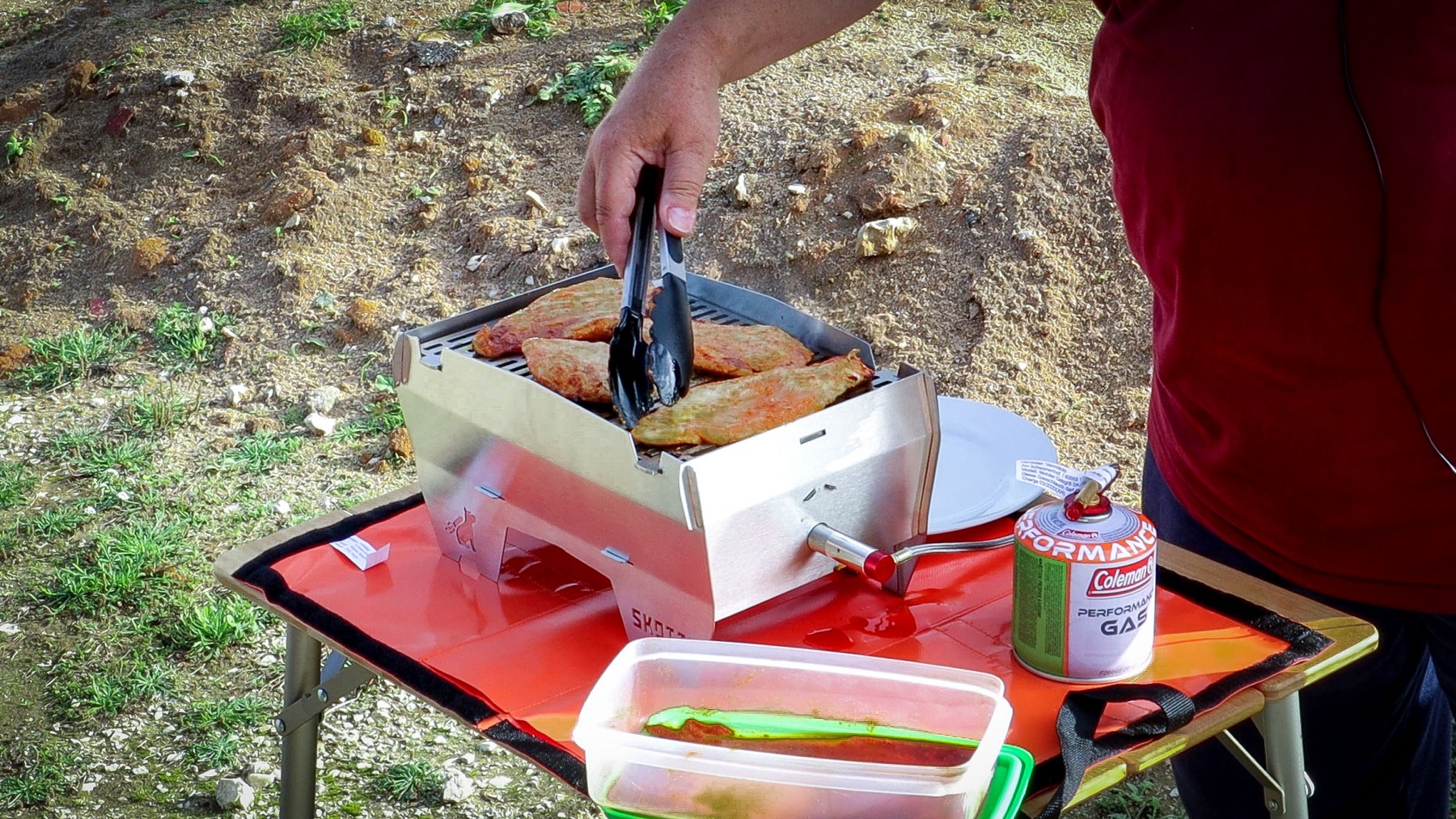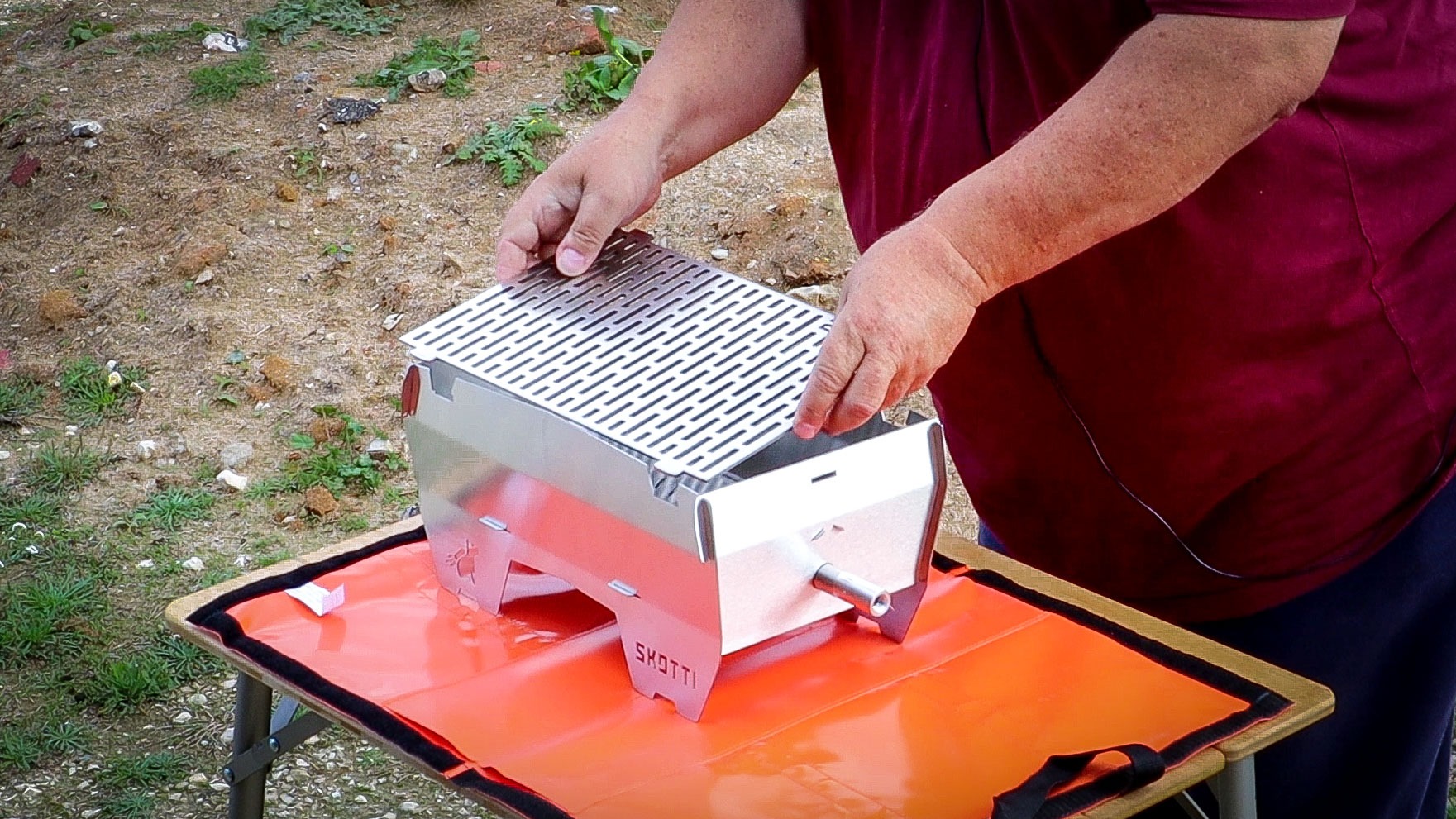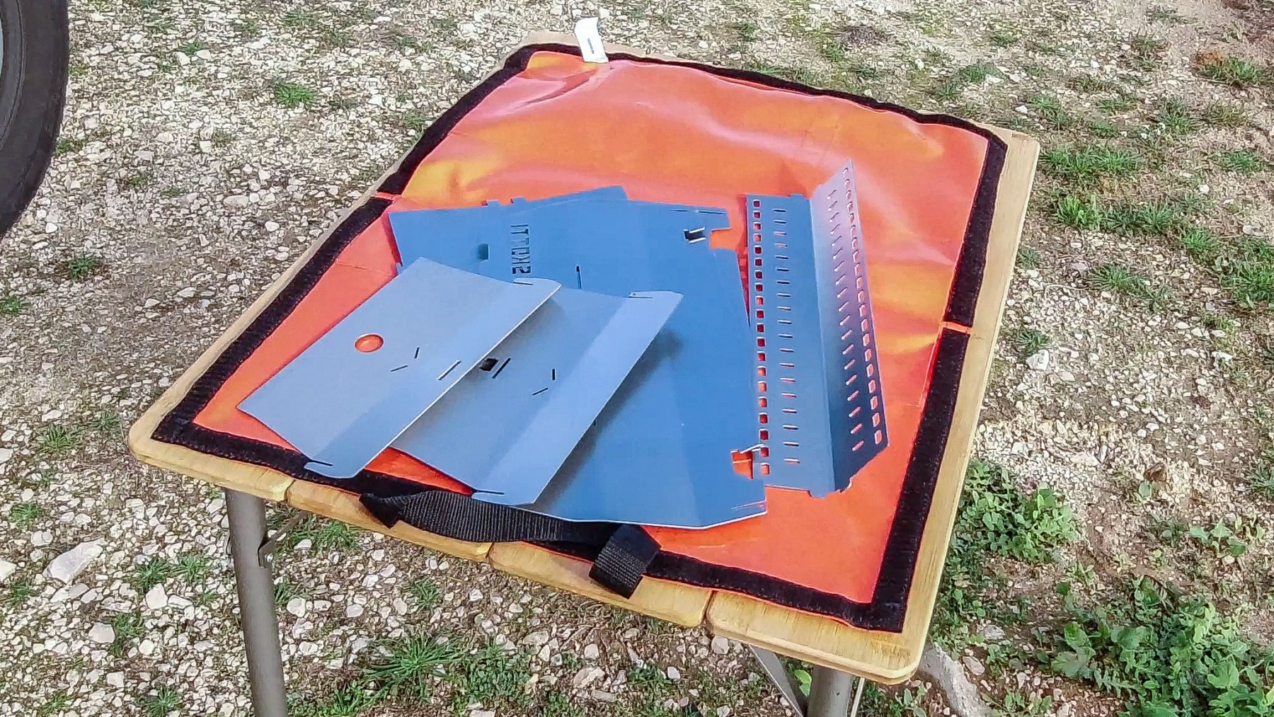 Dieser Grill besteht aus flachen Einzelteilen, die alle in eine flache, orange Tasche passen und somit wenig Platz wegnimmt, das Packmaß ist 45 x 30 x 3,5 cm . Er funktioniert prima und ist auch groß genug um für 2-3 Personen grillen zu können. Flach verpackt, schnell aufgebaut, an eine Gaskartusche an zu schließen und leicht zu reinigen, da er aus Edelstahl ist. Der Grill kann auch mit Holzkohle oder Holz betrieben werden, ist also universal verwendbar.