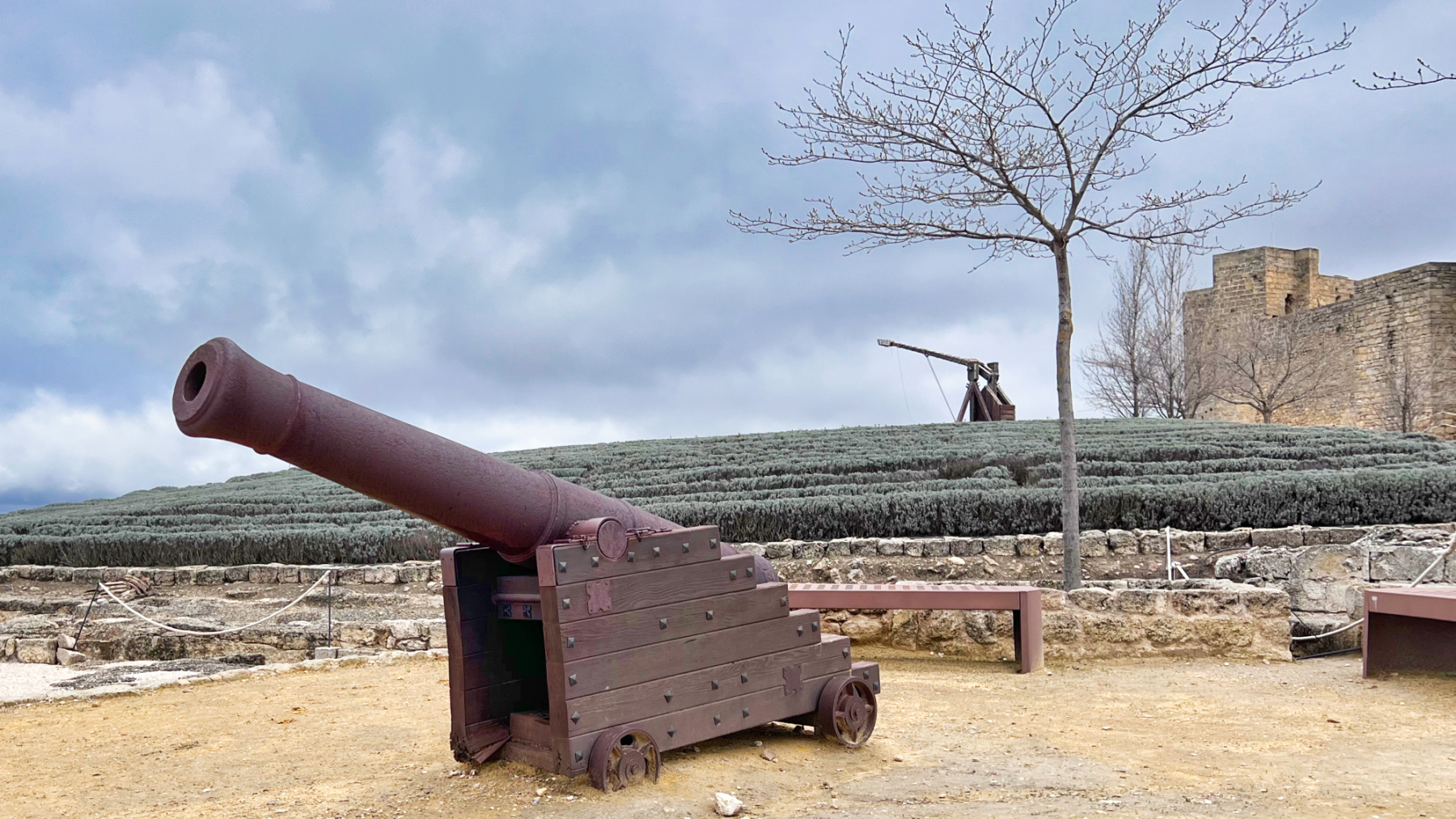 Heute breche ich erst gegen Mittag in Villalgordo auf, weil die Abfahrt über den Parkplatz komplett durch einen Markt blockiert war. Ich versuche zum Palacio Gonsalvez, einem verfallenen Palast auf der anderen Seite des Flusses zu gelangen, doch das ganze Gelände ist durch einen Zaun abgesperrt mit Hinweisschildern „Durchgang verboten“. So kann ich den Palacio nur von Weitem ansehen und füge noch ein Bild aus einem Drohnenvideo bei. Ich glaube ich muss mir für solche Gelegenheiten doch noch eine Drohne anschaffen.