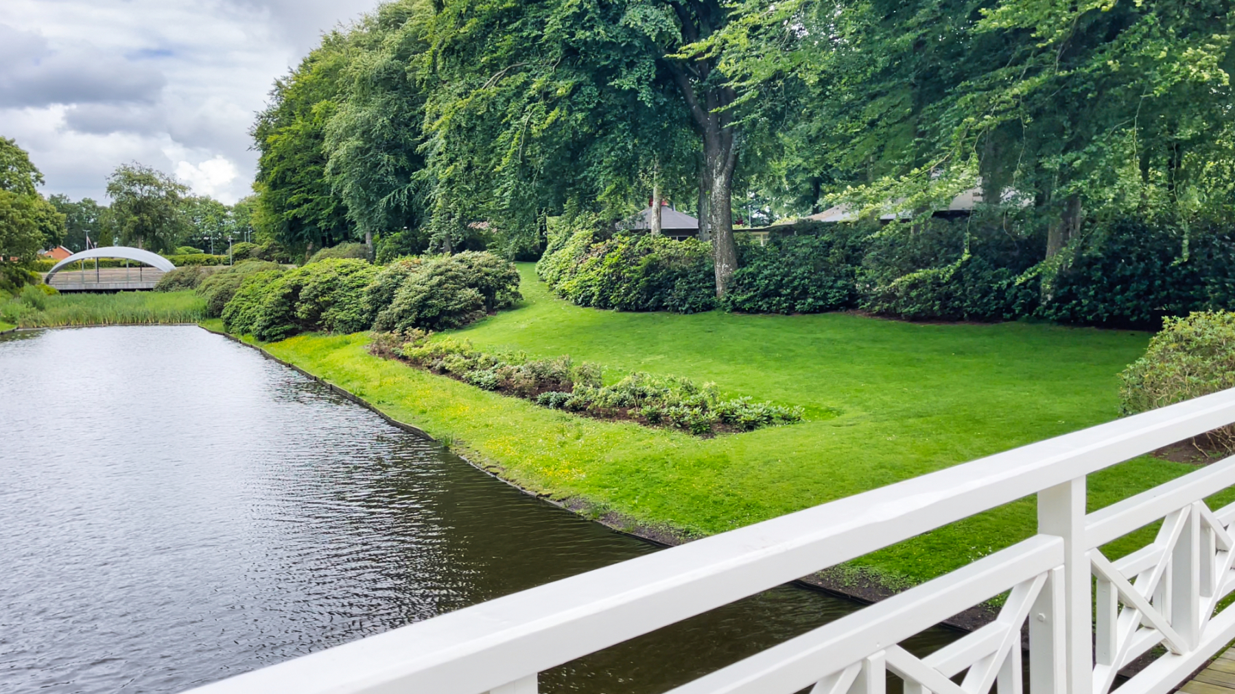 Hier gibt es einen kostenlosen Stellplatz mit kostenloser Ver- und Entsorgung, daneben ein Freibad (01.07.-31.08.) und einen Park mit See mit Schwänen, Enten und gegen Abend vielen Kröten oder Fröschen, die um die Wette quaken. Die Stellplätze sind recht schräg und meine Luftfederung hat es nicht ganz geschafft auszugleichen.