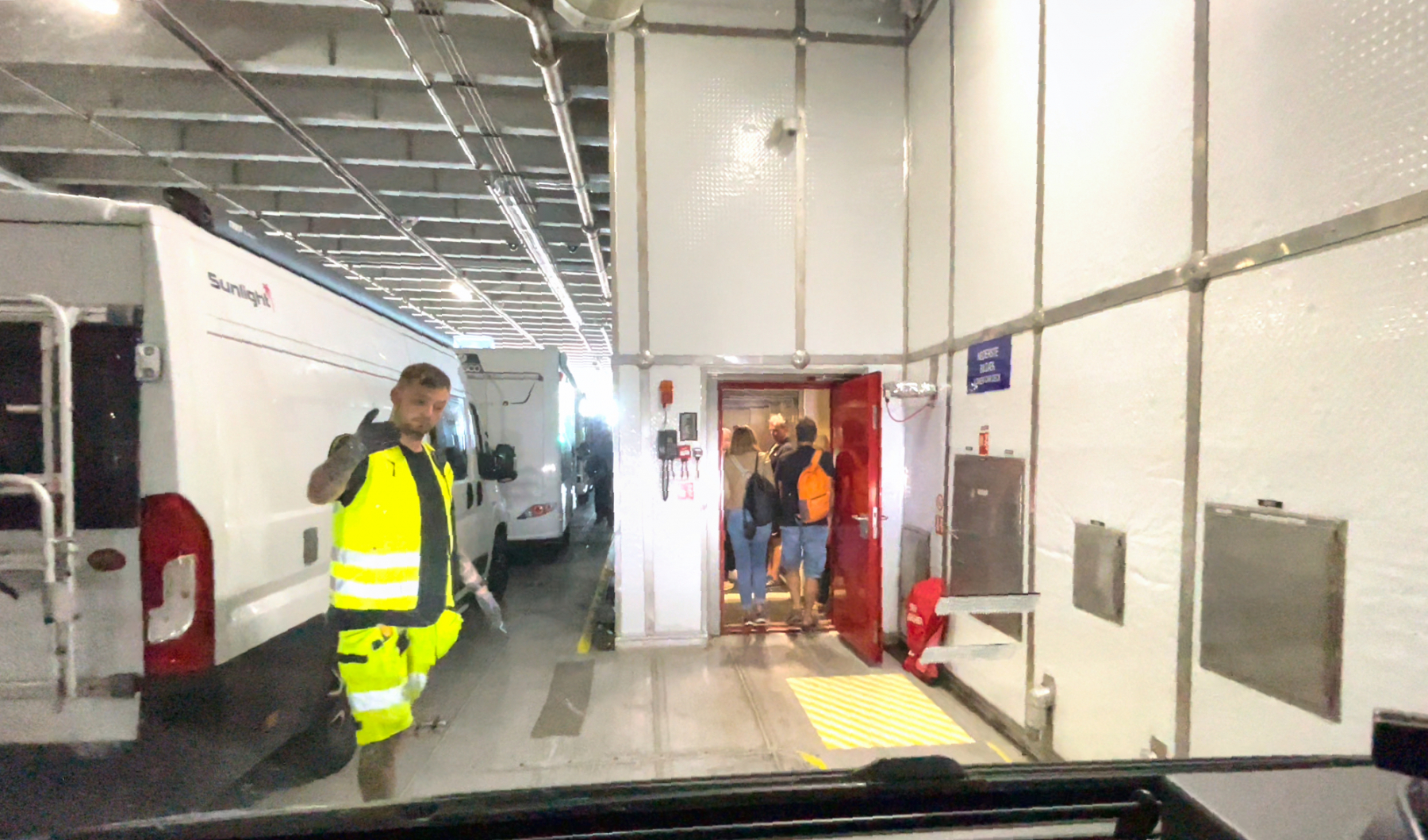 Die letzte Nacht war wieder sehr unruhig, da Tommy wie bei einem Gewitter herumgeklettert ist und sehr unruhig war, nur dass außer dem Regen nichts war. Er versucht dann auf das Armaturenbrett zu klettern, kratzt an der Schiebetür und, und, und… Ich habe ihn dann zeitweise auf dem Beifahrersitz angeleint, so dass er sich kaum davon herunter bewegen konnte, was ihm natürlich auch nicht gepasst hat.