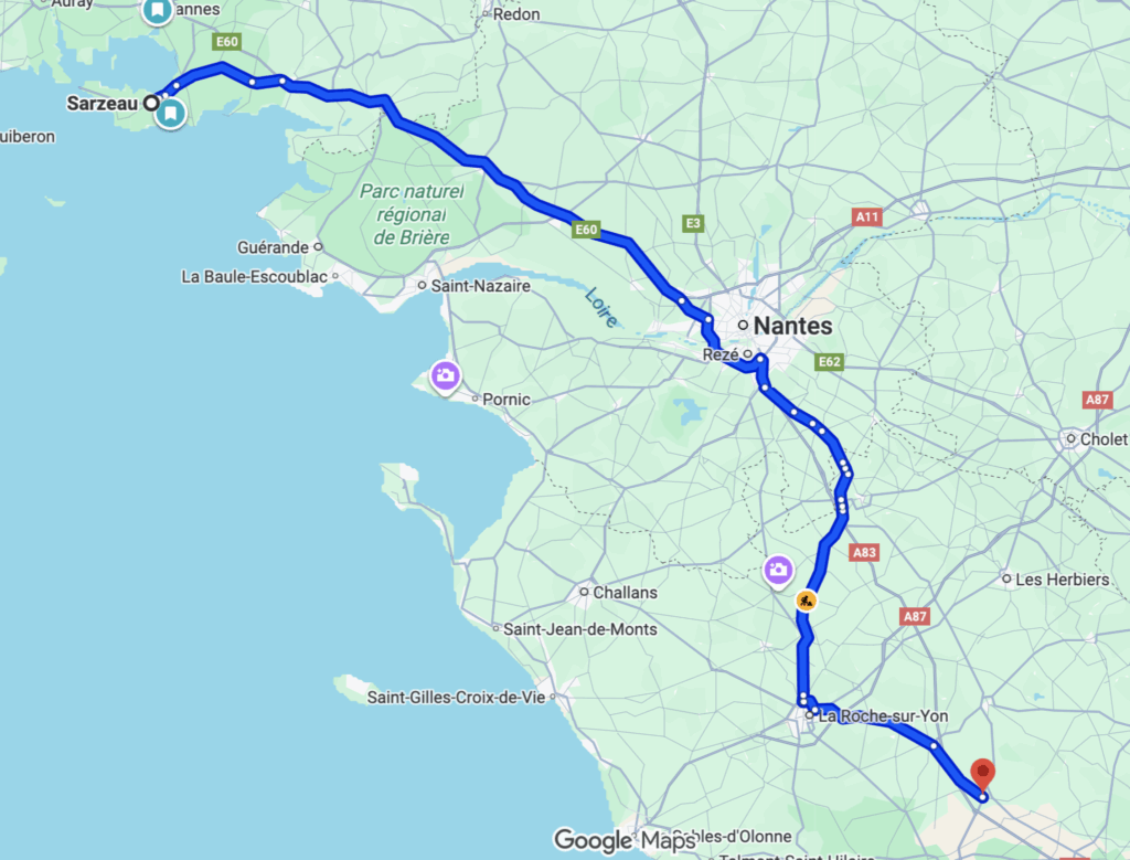 Dann ging es weiter etwa 150 km südöstlich nach Sarzeau zu einem kleinen kostenlosen Stellplatz, etwas laut, weil er in der Nähe der Schnellstraße liegt aber für eine Nacht geht es.