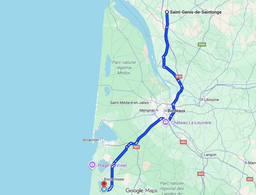 Heute war wieder fast ein reiner Fahrtag mit 150 km und 2,5 Std. nach Gastes in der Nähe von Arcachon. Hier stehen wir auf einem kleinen Stellplatz für Wohnmobile vor dem Camping Les Echasses. Da die Rezeption heute am Sonntag nicht besetzt ist, konnten wir uns nicht anmelden.
