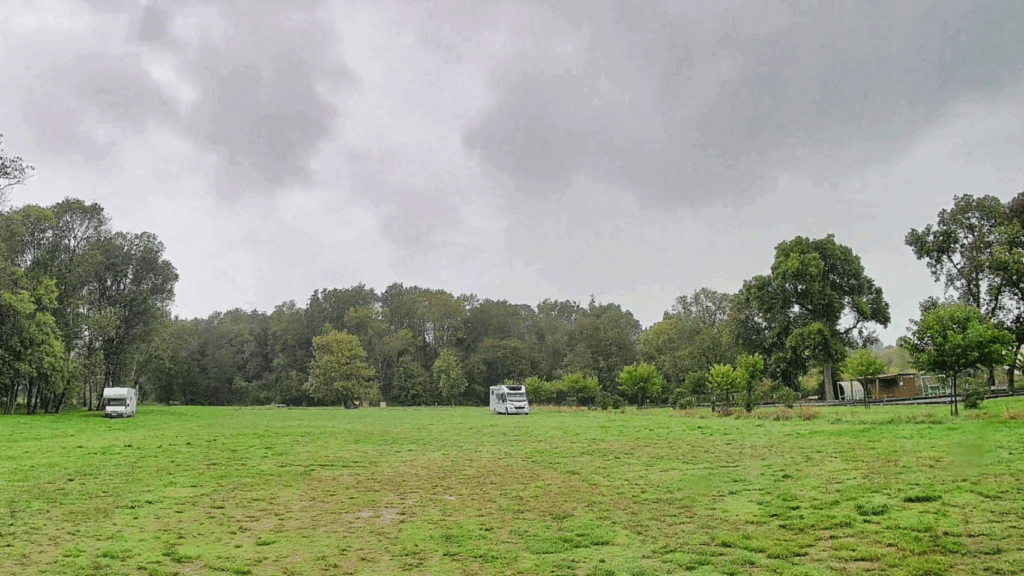 Heute war ein reiner Fahrtag, weil es ziemlich viel regnete und stürmte. So ist Uschi, die keinen Strom mehr hatte und somit auch nicht frühstücken konnte zum nächsten Intermarche gefahren, wo es leider kein Café gab. Wir haben uns dort getroffen, sind dann aber unabhängig von einander zum 150 km entfernten kostenlosen Stellplatz gefahren, auf dem ich eigentlich zwei Tag zum Filmschneiden bleiben wollte.
