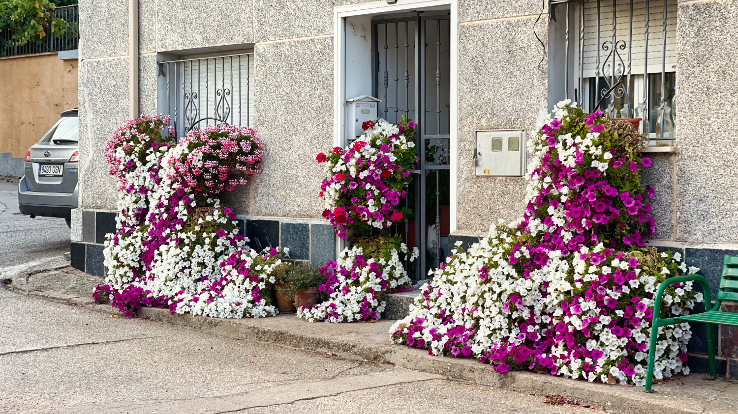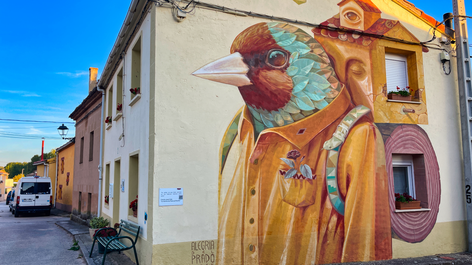 Danach fahren 45 km weiter zum kostenlosen Stellplatz in Villagomez. Das Wetter spielt weiter mit nur ist es ziemlich windig, so dass Uschi Schutz im Windschatten eines Liners sucht. Der Stellplatz ist recht neu etwas außerhalb vom Ort, neben einem Freizeitpark mit Tischen, Bänken etc.(leider zur Zeit geschlossen). Der Platz bietet Ver- und Entsorgung, Strom, Toiletten und Duschen. Der Platz ist kostenlos nur Strom und Duschen müssen mit je 4 € gebucht werden über die Internetseite. Das Sanitärgebäude ist wunderschön angemalt ebenso einige Hauswände im Ort.